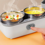 Con solo conectarla a la corriente, podrás calentar tus alimentos en pocos minutos, manteniendo el sabor y la textura como recién preparados. Su diseño incluye compartimentos separados, ideales para arroz, carnes, sopas, vegetales o lo que prefieras, evitando que tus comidas se mezclen.
